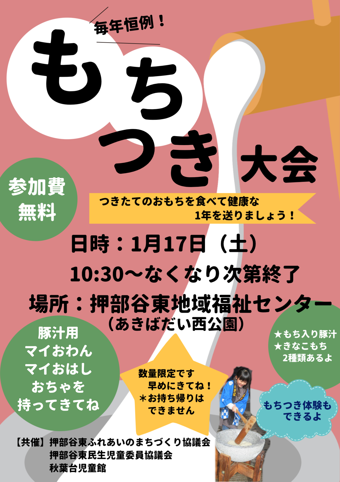 今年も地域福祉センターでもちつき大会を開催します!ぜひご家族そろってご参加ください。